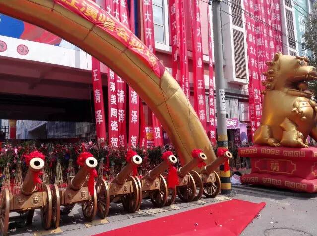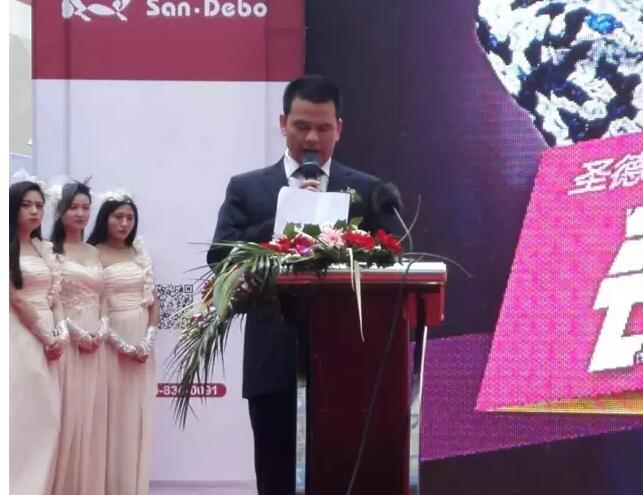9:38分,在這個良辰吉時,鑼鼓聲響,擊鼓舞起,禮花綻放,標志著圣德保淮安旗艦店全新篇章正式開啟。圣德保銷售總經理嚴偉才先生、新中源建材副總經理助理吳有財先生等廠家領導及圣德保淮安經銷商王火炬先生出席了本次盛會,嚴總與王總并為本次活動致辭。