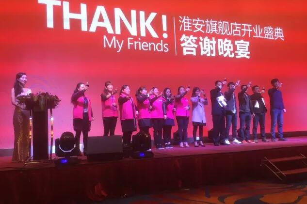 當天晚宴上,圣德保淮安經銷商王總發表了激情澎湃的《擁抱未來,堅定前行》主題演講,王總在演講中表揚并高度認同開業期間淮安家人們所獲得的成績,同時表示,圣德保淮安旗艦店才剛剛開啟篇章,需要每一位淮安圣德保人爭做智勇雙全的戰士共創新輝煌!最后,王總攜手全體淮安圣德保家人們舉杯祝福淮安圣德保明天更好!!!