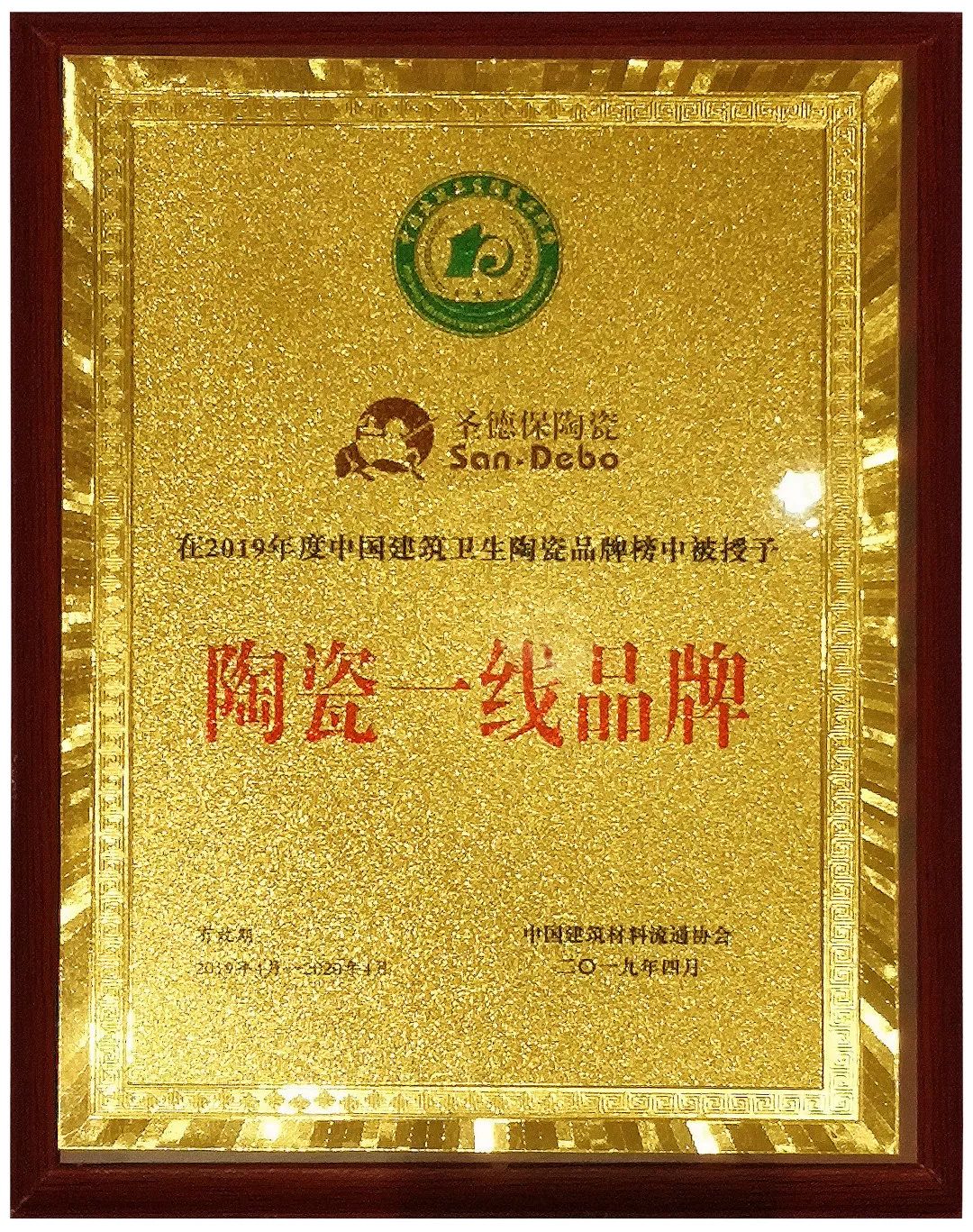 - “陶瓷一線品牌”牌匾 -